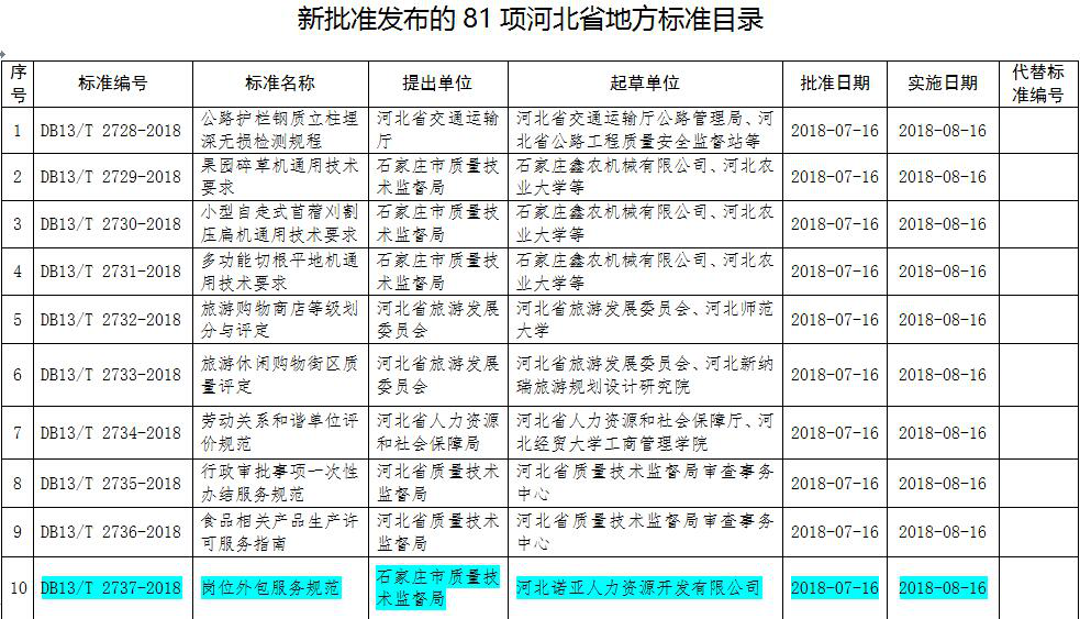 該標(biāo)準(zhǔn)以河北省人力資源企業(yè)管理調(diào)研為基礎(chǔ),結(jié)合崗位外包的實(shí)際情況,規(guī)定了崗位外包服務(wù)的總體要求、項(xiàng)目管理、物質(zhì)資源管理、人力資源管理、服務(wù)過程等要求,開創(chuàng)性地填補(bǔ)了我省乃至我國崗位外包服務(wù)標(biāo)準(zhǔn)的空白。該標(biāo)準(zhǔn)的實(shí)施,旨在為用工單位提供合規(guī)、有價(jià)值的服務(wù),進(jìn)一步規(guī)范人力資源崗位外包服務(wù)活動的要求,明確崗位職責(zé),便于工作溝通,有利于提高人力資源服務(wù)企業(yè)的服務(wù)質(zhì)量,最終引導(dǎo)崗位外包服務(wù)業(yè)務(wù)的快速、有序發(fā)展。